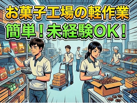 お菓子工場での製造補助・箱詰め作業。日払い対応&土日祝休みで働きやすい軽作業ワーク。