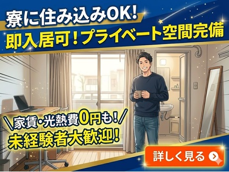希望があれば入寮も可能なため、通勤重視か住み込み重視かを選択できます。生活スタイルに合わせて柔軟に働き方を決められる点が特徴です。住まいを整えることで仕事にも集中しやすくなります。 【入寮選択のメリット】 ・住まいの選択肢が広がる ・通勤時間を抑えやすい ・生活基盤を整えやすい ・遠方からの応募にも対応 ・新生活をスムーズに開始